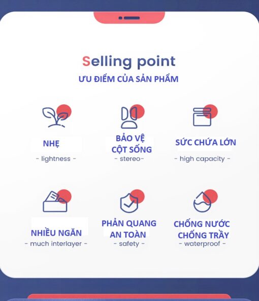 | Quai đeo | 2 quai balo; 1 quai xách tay |