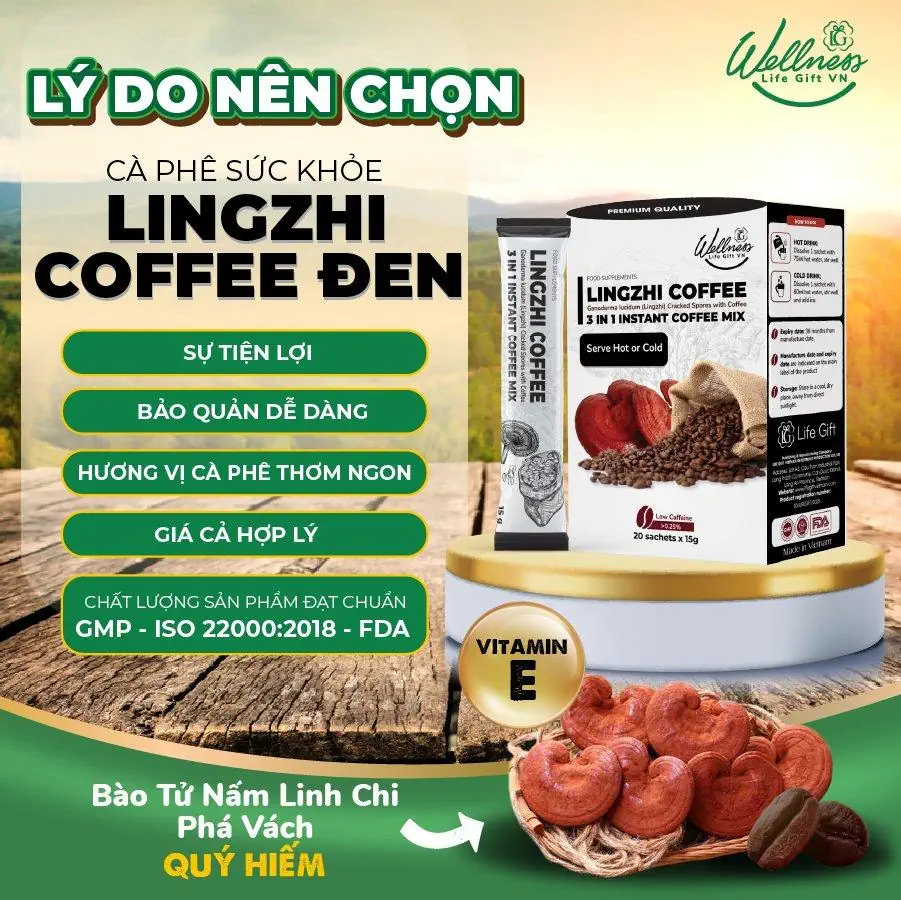 Cà phê Lingzhi của Life Gift là sự kết hợp hoàn hảo của Cà phê rang xay hảo hạng với Bào tử nấm Linh chi phá vách, Vitamin E ⟹ HIỆU QUẢ HẤP THU LÊN ĐẾN 45 LẦN.