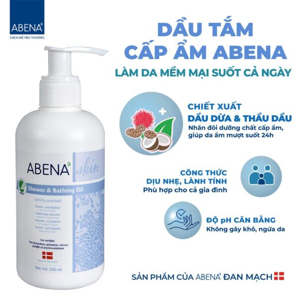 1. Tên sản phẩm: Dầu tắm cấp ẩm Abena – 250ml