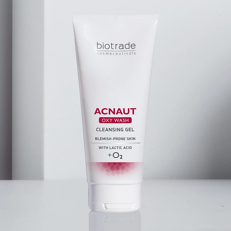 Gel rửa mặt ACNAUT OXY WASH CLEANSING GEL với 2% Acid Lactic, bổ sung oxy nguyên tử để tăng cường oxy cho da, vừa sạch sâu lại vừa giảm quần thể vi khuẩn gây mụn.