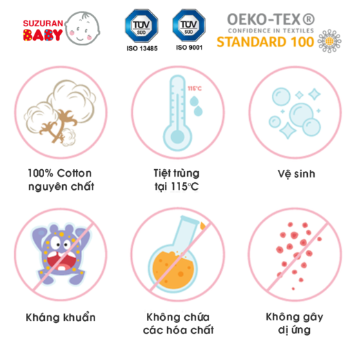 Khăn thấm mồ hôi trẻ sơ sinh Chitosan kháng khuẩn 3 cái/gói – Suzuran Japan