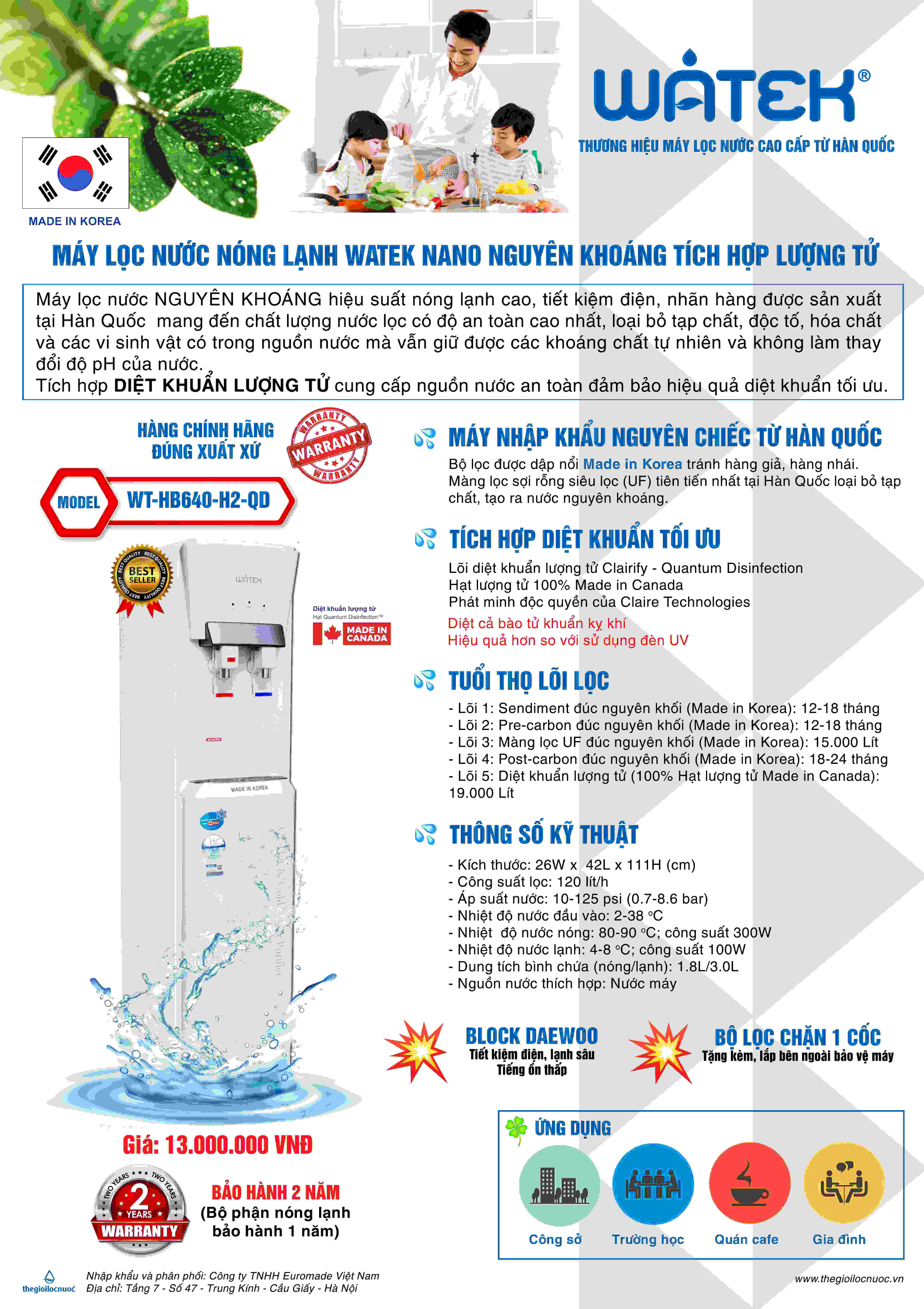 Máy lọc nước Watek nóng lạnh Nano (UF) – Model: WT-HB640-H2-QD
