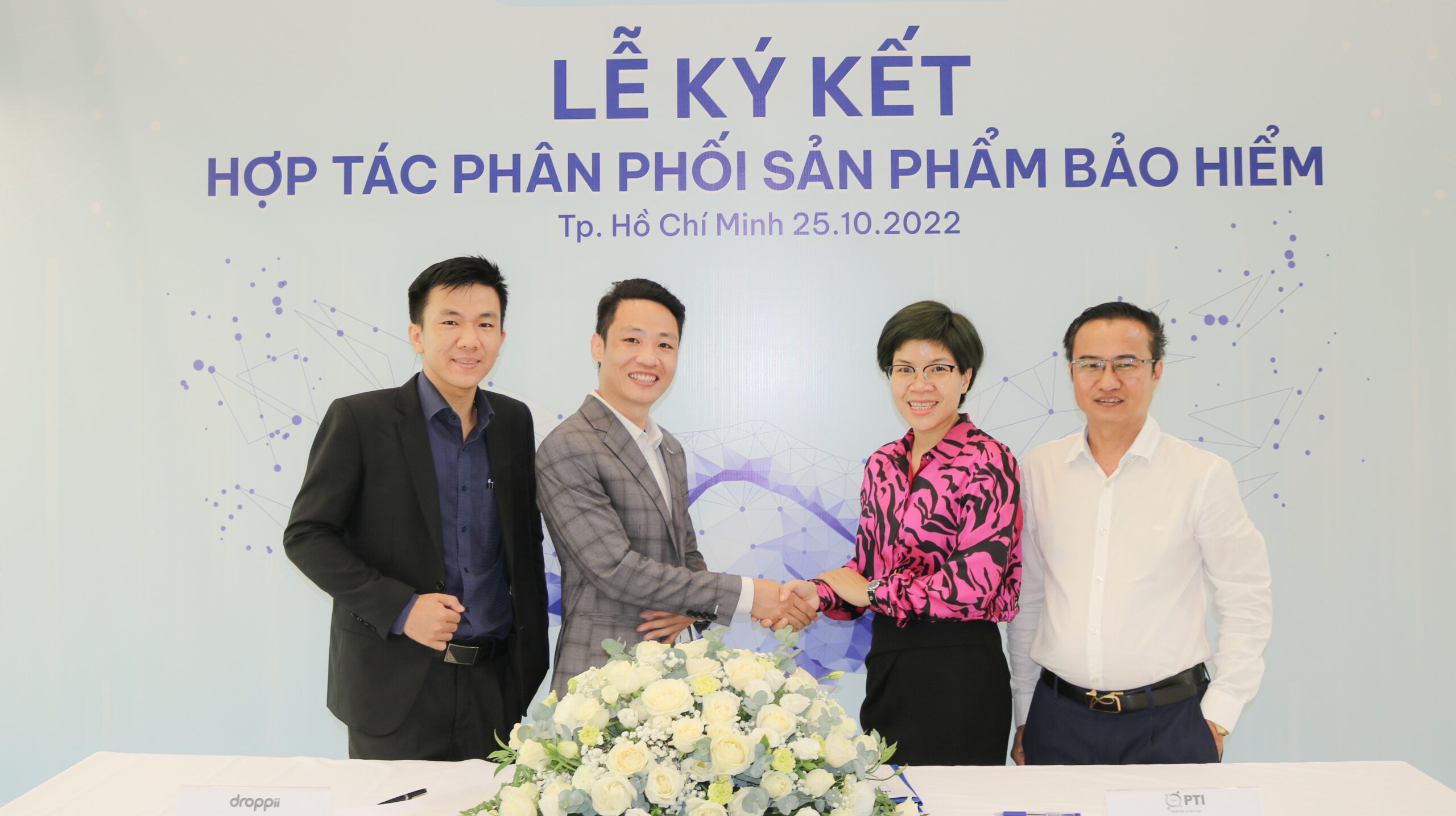 Ngày 25/10/2022, Tổng công ty Cổ phần Bảo hiểm Bưu điện (PTI) chính thức ký kết hợp tác với Droppii nhằm phân phối các sản phẩm bảo hiểm của PTI tới khách hàng thông qua nền tảng thương mại điện tử Droppii. Buổi lễ có sự tham gia của bà Hoàng Thị Yến – Giám đốc PTI Digital, ông Dương Công Tấn Phát – Head of Procurement Droppii cùng lãnh đạo của hai bên.